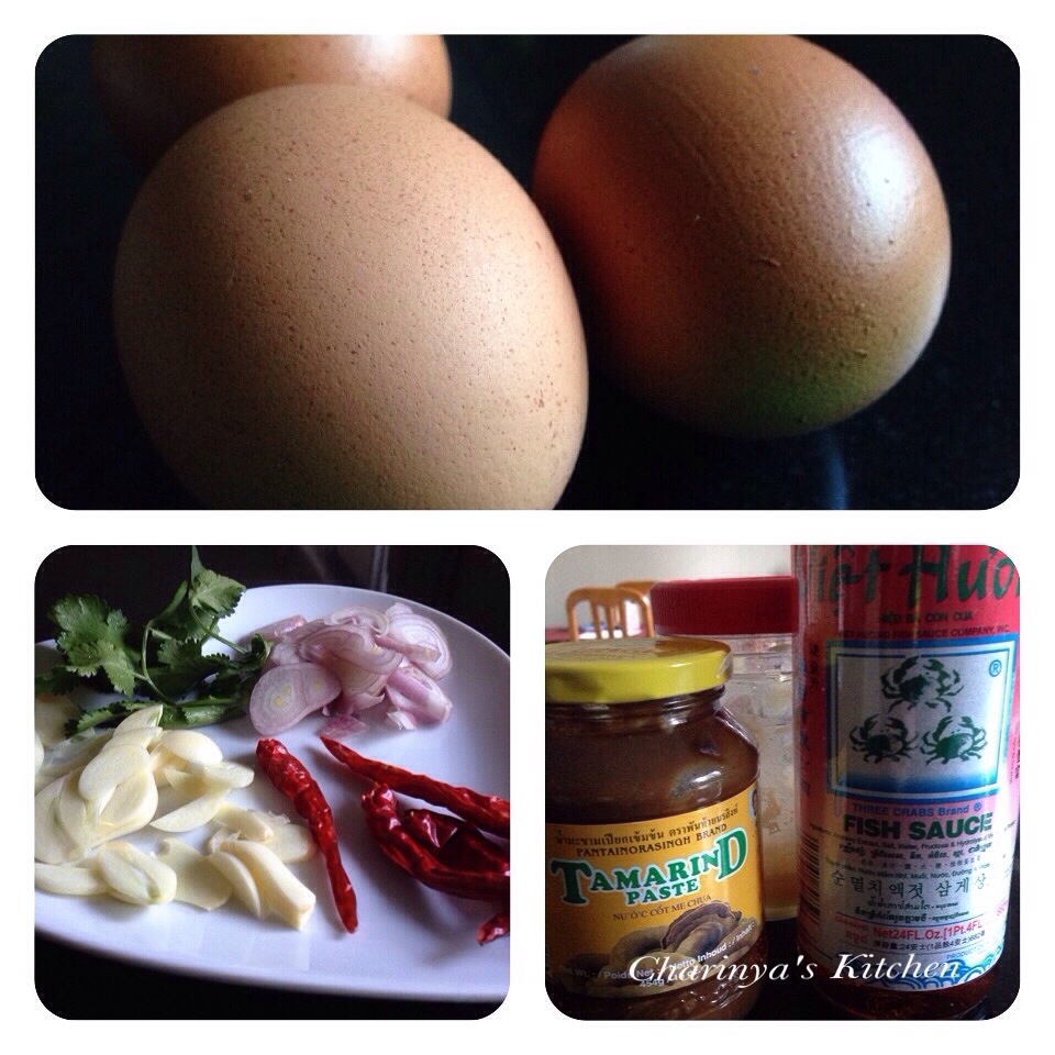 Ingredient : Eggs, garlic, dry chilli, shallot, coriander, fish sauce, palm sugar and tamarind purée.