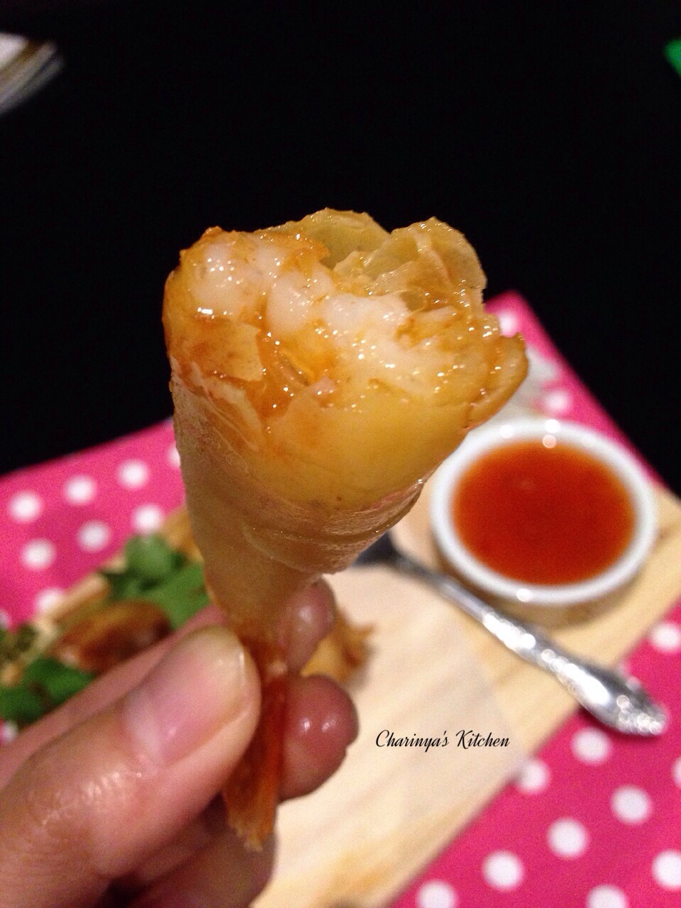 - Prawns, peeled and deveined . Gently cut them open to ensure the seasoning is placed inside. Each prawn makes 1 spring roll, so use as many you like.