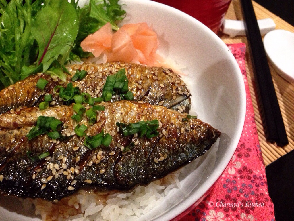 Serve the fish with rice and salad alongside with pickled ginger and garnish with chopped onion if prefer.