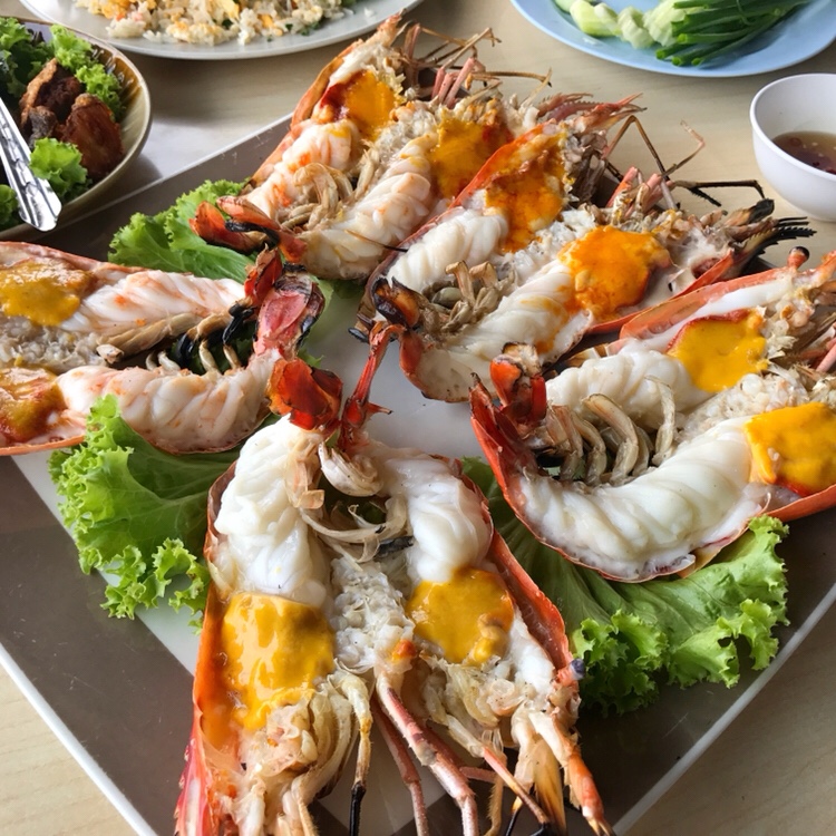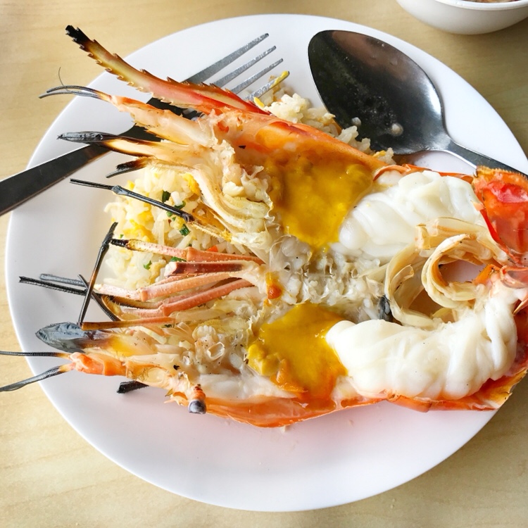Grilled river prawns(กุ้งแม่น้ำเผา) Of course must be this dish as this is the main reason we were here. That day the restaurant only had one size prawn, which was 5 prawns weighing 1kg. The chef butterflied the prawns then grilled them and served with seafood dipping sauce. What was so special about this is the yellow oil from the prawn head that tasted so good.