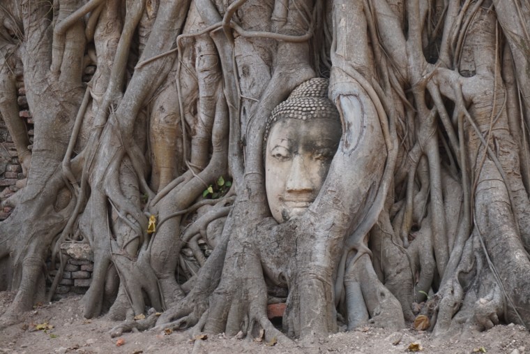 This time I went with my friends, and the main reason for the trip was to eat the giant river prawns. We left Bangkok around 9am. The first place we stopped was Wat Yai Chai Mongkhon, then Wat Mahathat, which is well known for the Buddha head with a tree trunk and roots growing around it.