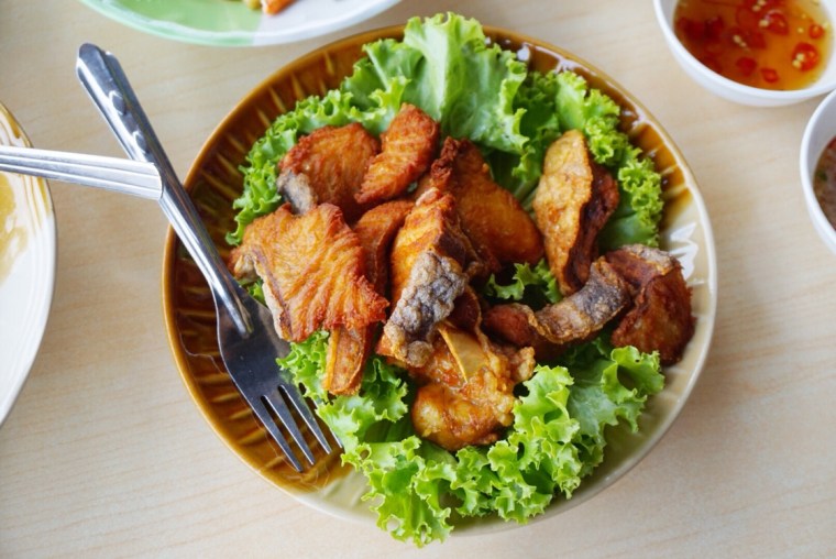 Fried fish with fish sauce (ปลาทอดน้ำปลา). This was my friend’s choice, I don’t really remember the name of the fish. It tasted good, but it is something I cook quite often so it was not that special to me.