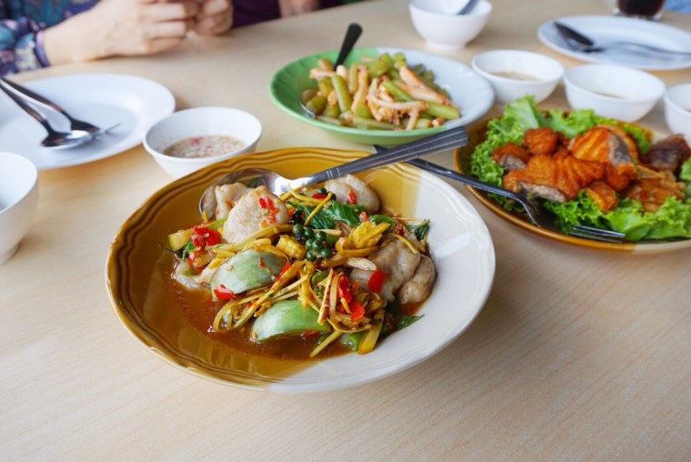 The place we stopped for lunch is “Ruan Thai Kung Pao“. The shop is located beside the Chao Phraya river and was recommended by my foodie friend on Instagram. Here are the dishes we had.