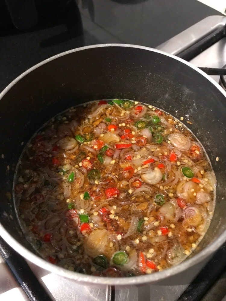 5. Leave it to cool. The sauce will get stickier when it is cool. The sauce can be kept in a clean jar in the fridge up to a month.
