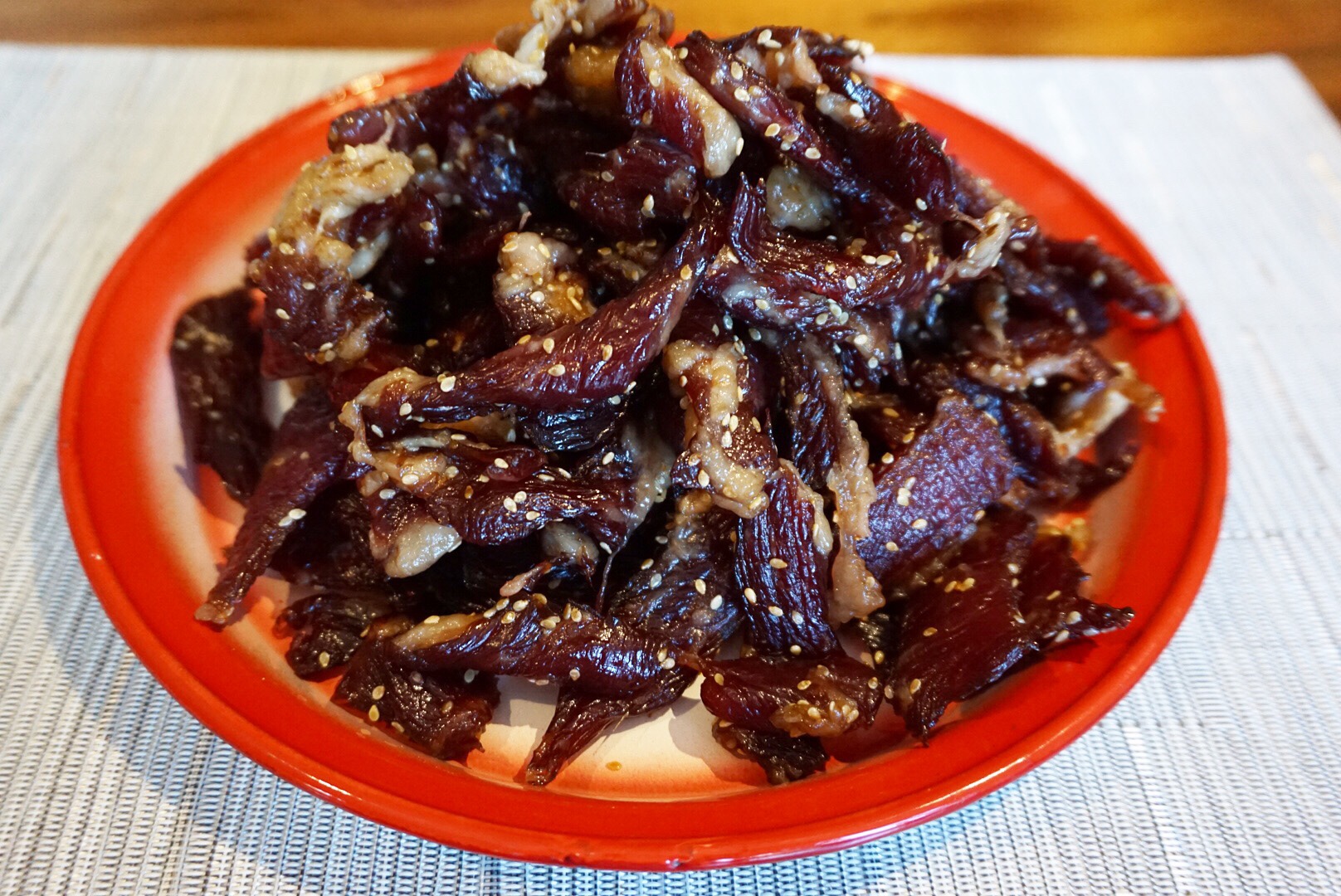 In the past the way of creating the dish was so simple. Just marinate the meat with salt, and sometimes also pepper, and dry the meat under Thailand’s year round hot sun. Nowadays the recipe is hugely varied. Neua dad deow is often referred as “Thai style beef jerky” in western countries. After I had tried beef jerky in Australia, I must say that Neua dad deow is not the same as beef jerky. For the Thai recipe the beef is dried in the sun for just 3-4 hours, and still has some moisture and needs to be cooked before consuming. This is unlike western beef jerky, where the beef is completely dried and can be eaten without further cooking. The word ‘Neua’ means beef and “dad deow” is one sunlight, so as the name suggests it is dried no longer than that. I like to say it is semi- dried beef more than just dried beef. Now it is summer in Australia with plenty of sunlight, so why don’t use the benefit of nature and try to make this and decide yourself if you prefer Thai style beef jerky or the western style.