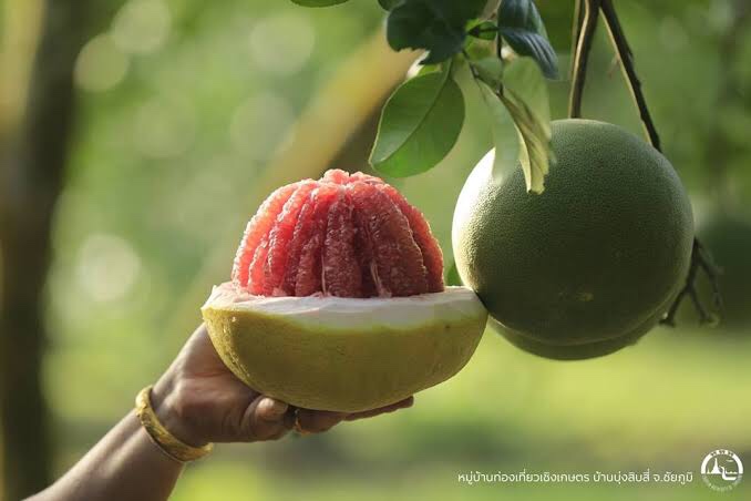Next I want to introduce you to a popular travelling trend in Thailand now, which is agritourism. My cousins and I went to “Bann bung sib si village”. The village is surrounded by the river and the mountains, and is famous for its delicious pomelo (a citrus fruit similar to grapefruit). This village welcomes tourists who want to spend their trip learning about agriculture or just relaxing among the peaceful nature. Here you can also do a home stay which is available at a really low cost. I will drop more information for those interested at the end of the post.