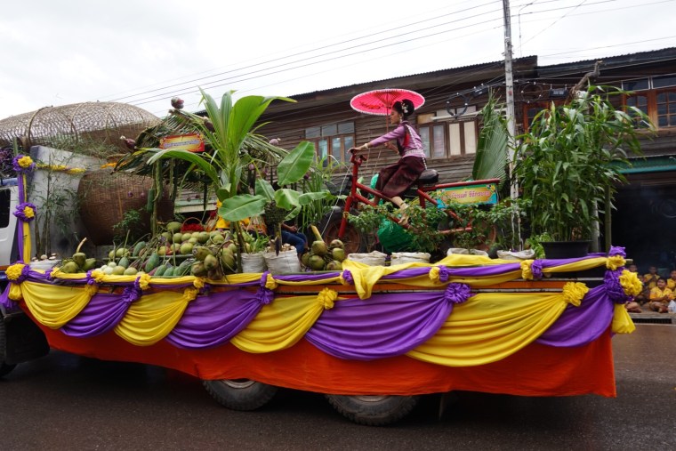 I was there in September so I could experience the annual celebration on 5 September. This event is a district tradition featuring in the classic Thai song “Rum wong sour bann tae” The song talks about a village lady on a bicycle who said good bye to her boyfriend and wished to see him again. Such a beautiful song!