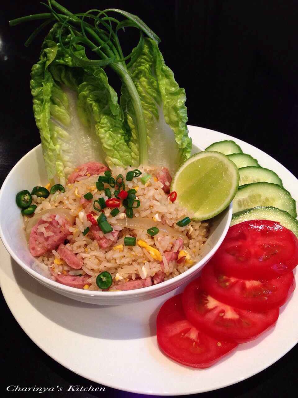Fried rice is a dish that is easy to make. Sometimes we call it a fridge cleaning dish as you can include anything that you want to get rid of, such as left over roast meat, ham, prawns, any kind of vegetable etc. Today I made “Kow Pad Nam ข้าวผัดแหนม”, which is a fermented pork fried rice. You can substitute fermented pork with any kind if protein or you can go vegetarian.